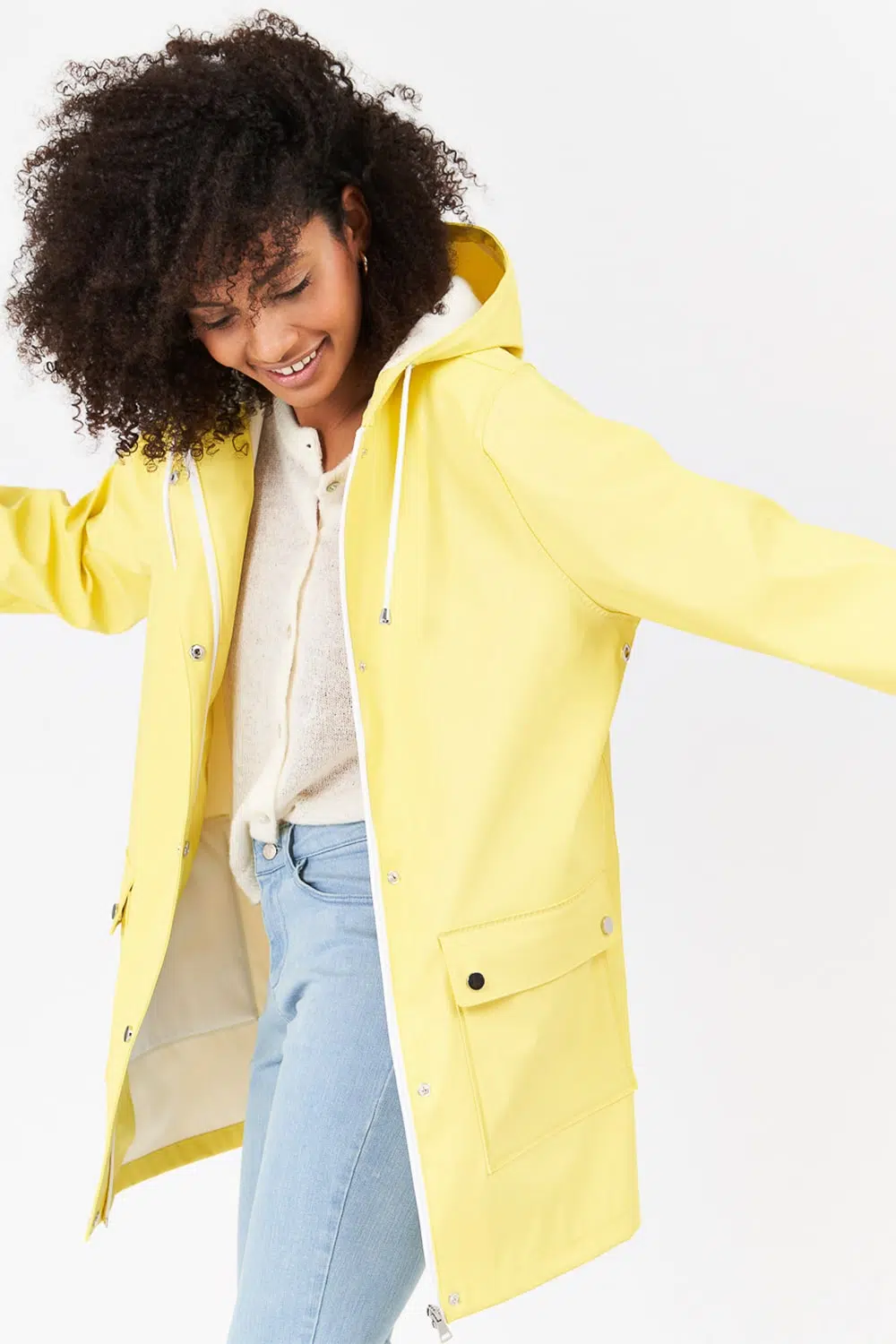 Dans le packshot produit porté, le vêtement est porté par un mannequin. Le produit est présenté dans son ensemble et met en avant les valeurs de la marque en plus de dévoiler le vêtement sous un aspect technique.